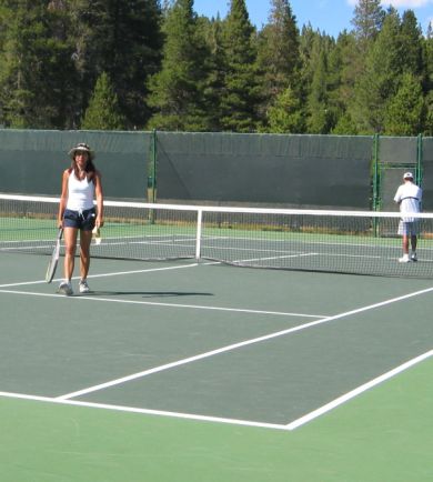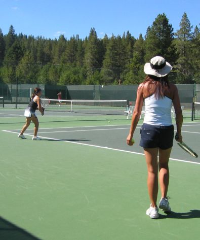 We spend every morning and afternoon at the club house at Tahoe Donner playing tennis. Truckee elevation is 5,820 feet above sea level so we had to buy special high altitude ball. I loved playing there because the ball move slower and I had more time to react! :-)