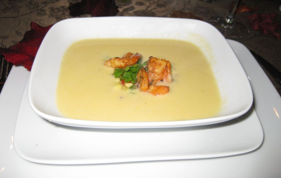 Roasted corn soup with shrimps - Delicious!