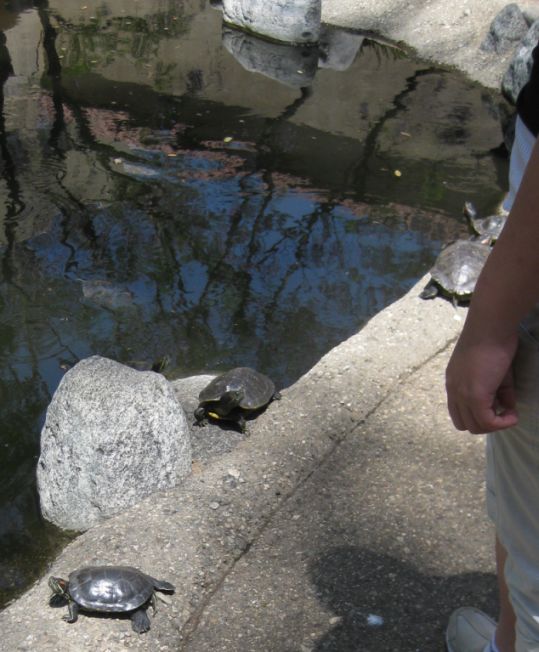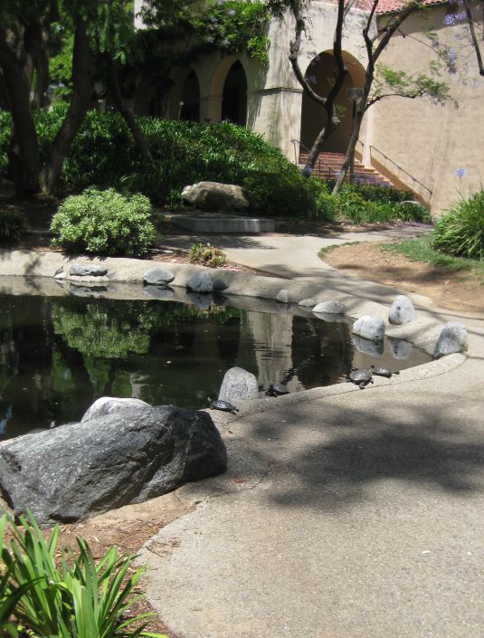 This is called the Caltech Frog and Turtle pond. On a hot day Faye told us the Turtles comes out and enjoy the sun. When it is cold they just inside the pond.