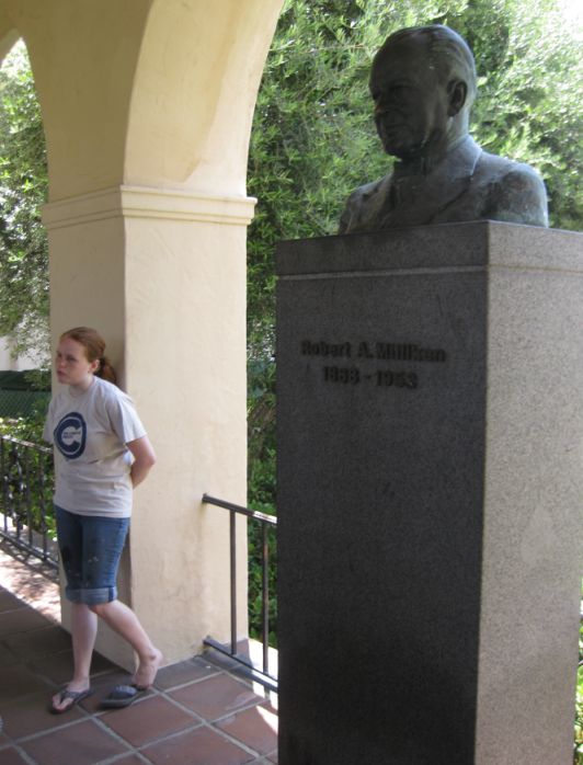 Bust of Robert Millikan (22 March 1868 – 19 December 1953) was an American experimental physicist, and Nobel laureate in physics for his measurement of the charge on the electron and for his work on the photoelectric effect. He served as president of Caltech from 1921 to 1945