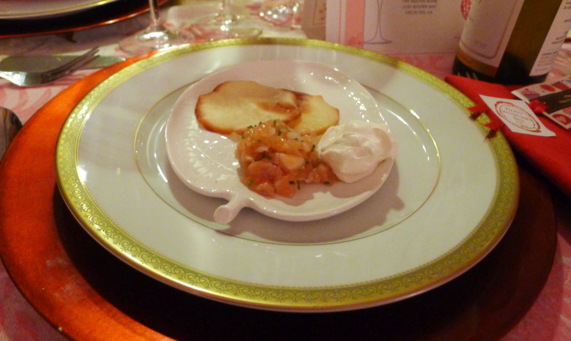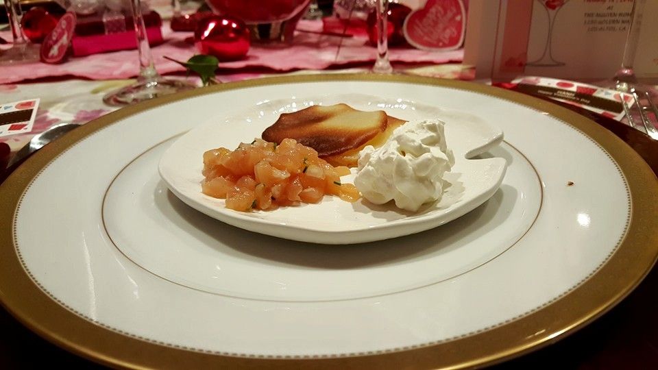 The tuile takes a lot of time to make but it is worth the effort as it is crunchy, rich and a perfect vehicle to enhance the creme fraiche and salmon tartar.