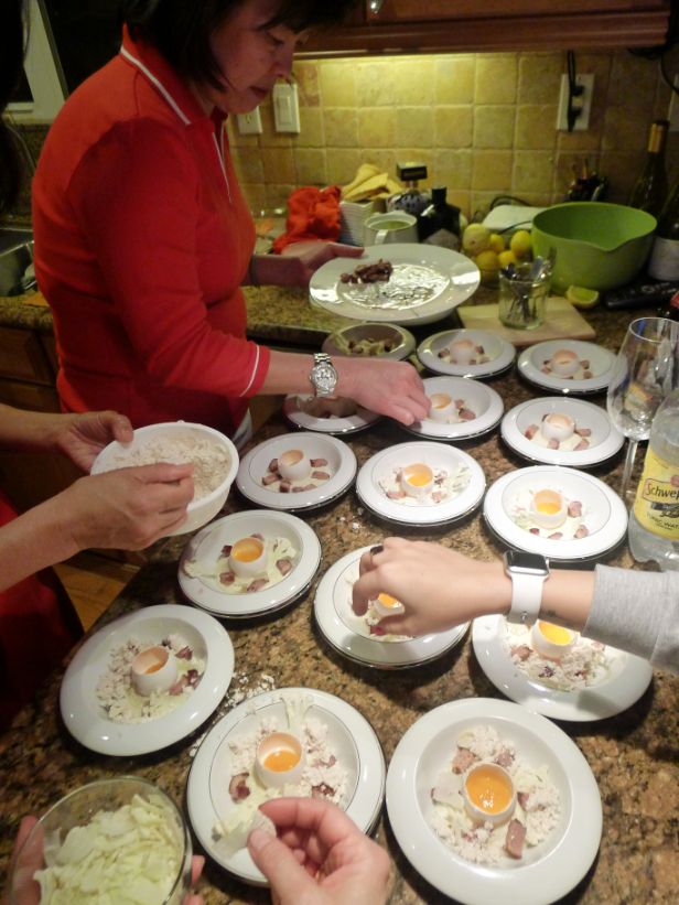 We had so much to drink and the all the dishes I served were up to my expectation. The squid ink Tonnarelli dish was a hit and I am so glad as this this is the first time I made it. The soufflé was stunning and the Coeur à la crème seems to please every palate. Overall it was a very successful dinner.