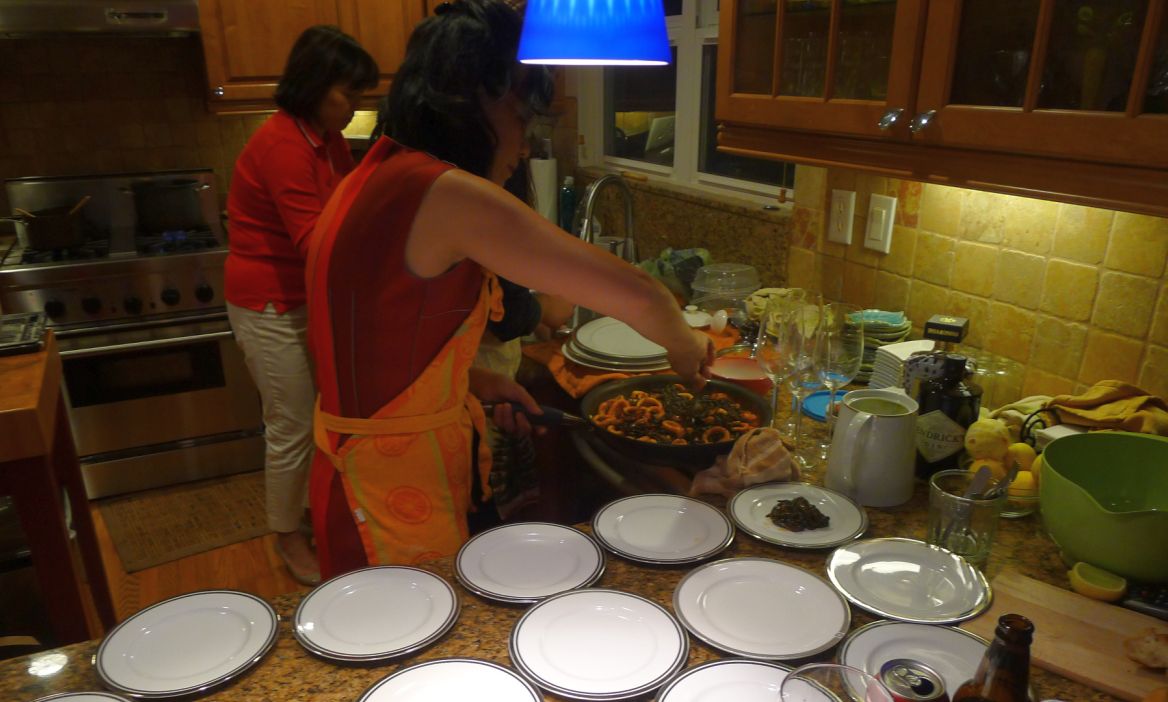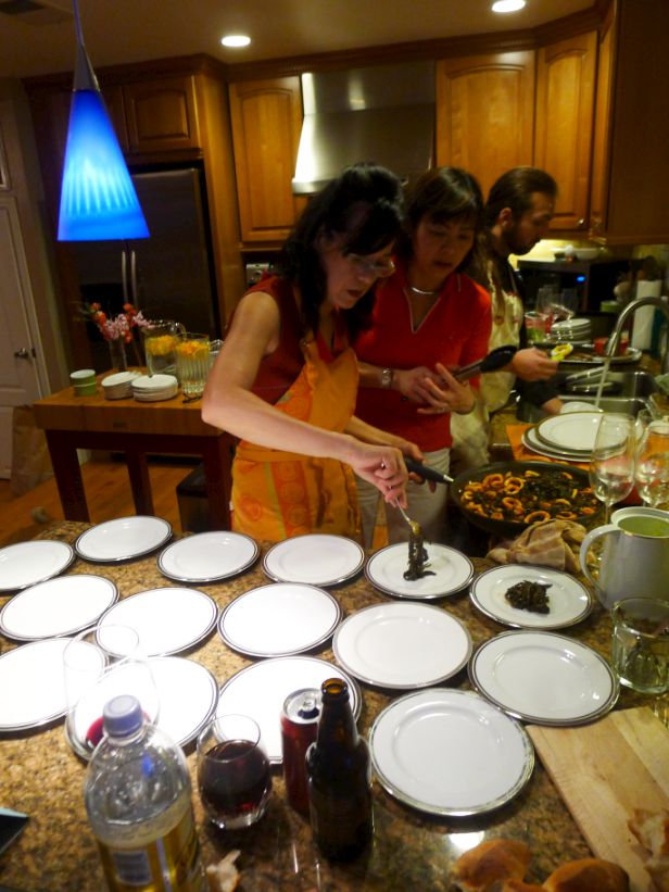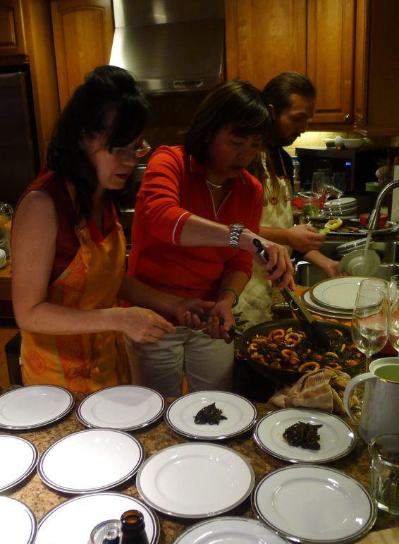 Me and Ha platting the squid ink Tonarelli. I am making sure that the portion is small....