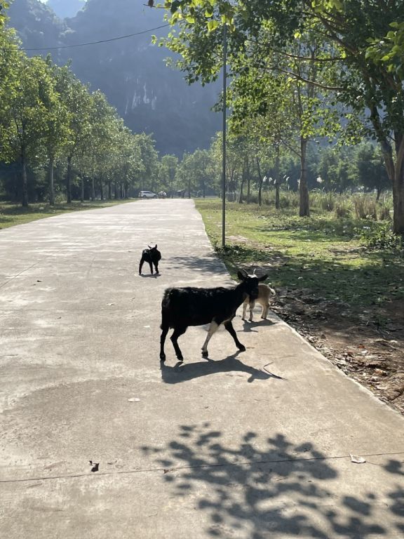 Road leading to the Am Tien cave. We saw goats roaming freely on the road.
