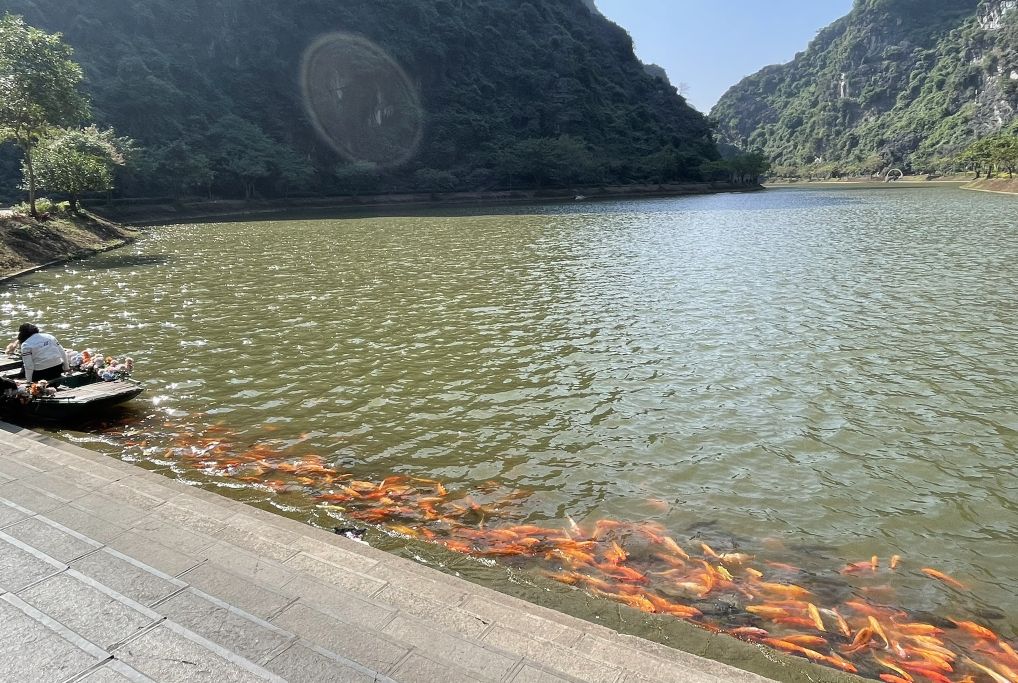 Am Tien Cave is a famous landmark located in Hoa Lu, the Ancient Capital, surrounded by towering limestone mountains, and right at the foot of the hill is a jade green lake that is often referred as the miniature Ha Long Bay on land.