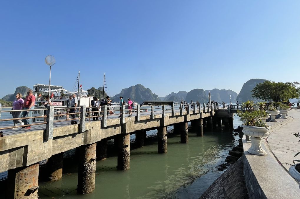 View of the Ha Long bay from the dock.