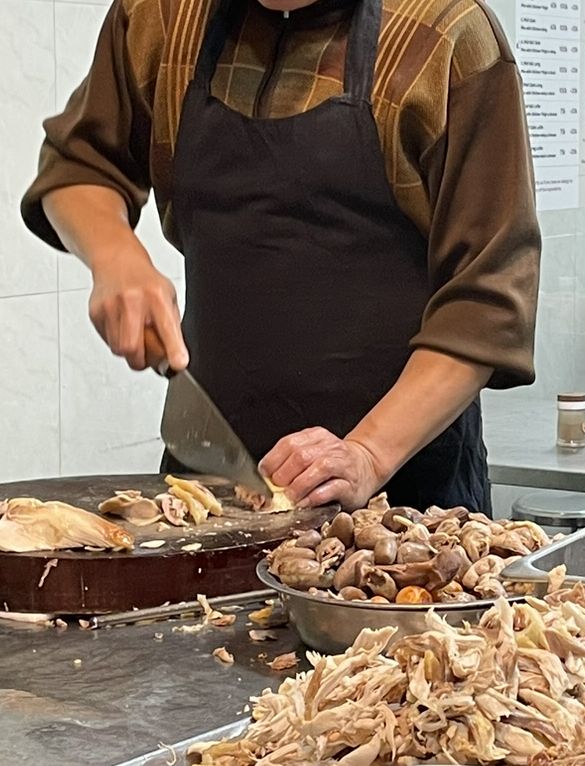 Right at the entrance they set up a counter where you can see employees cutting the meat and offal.