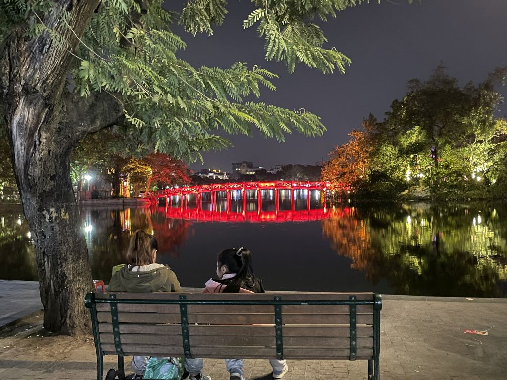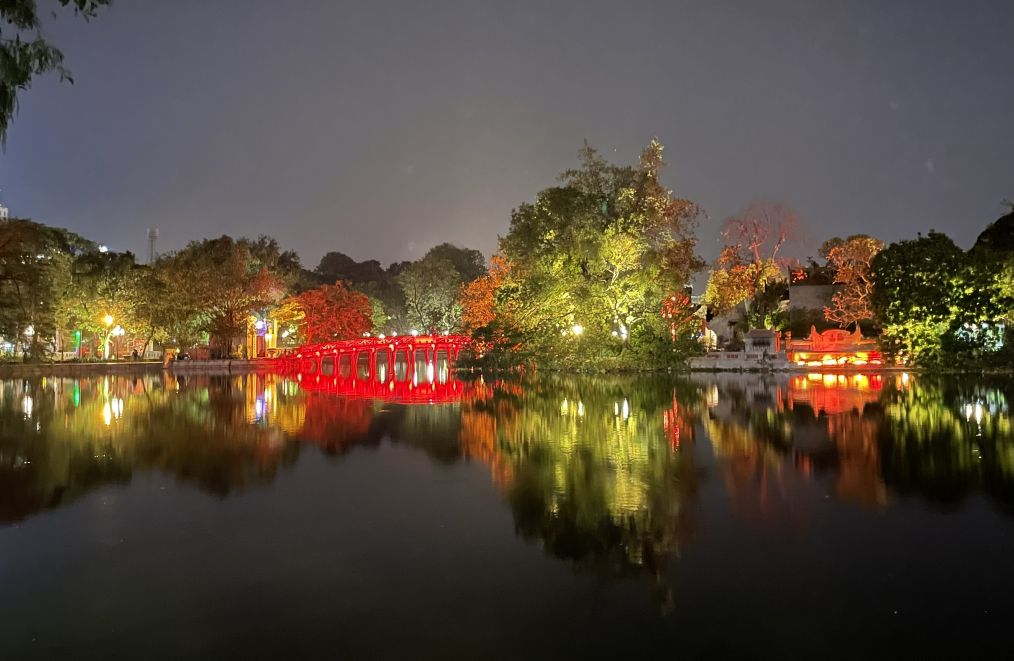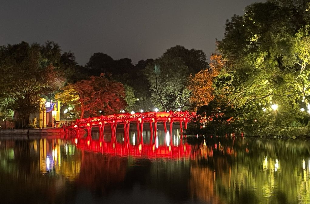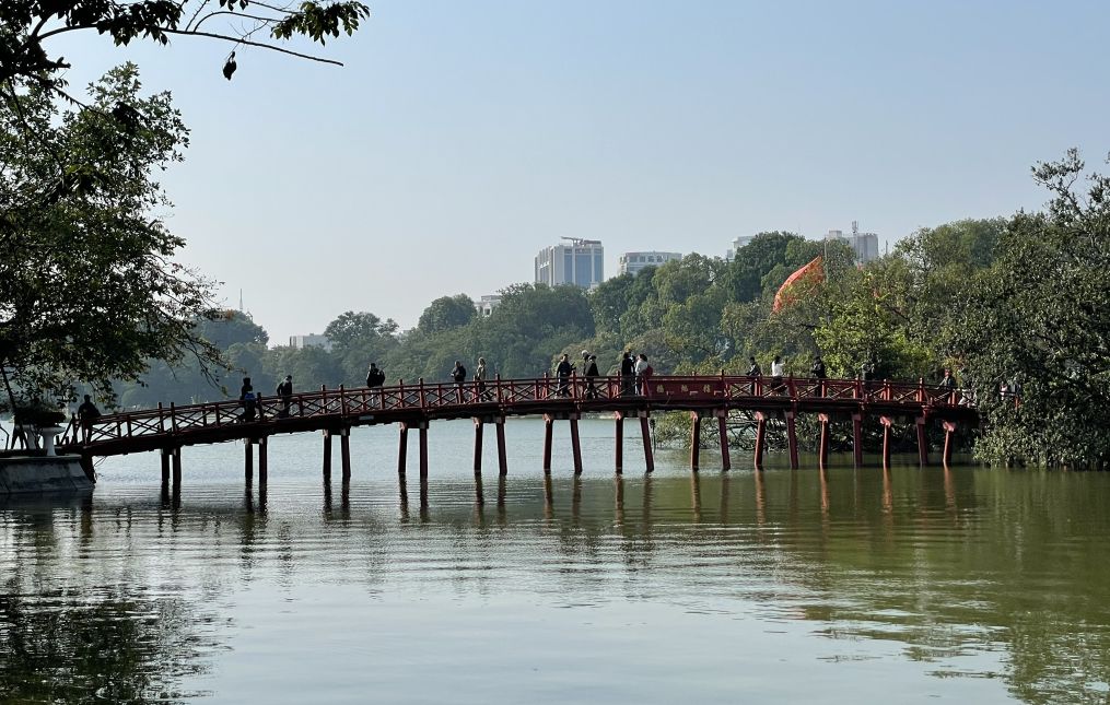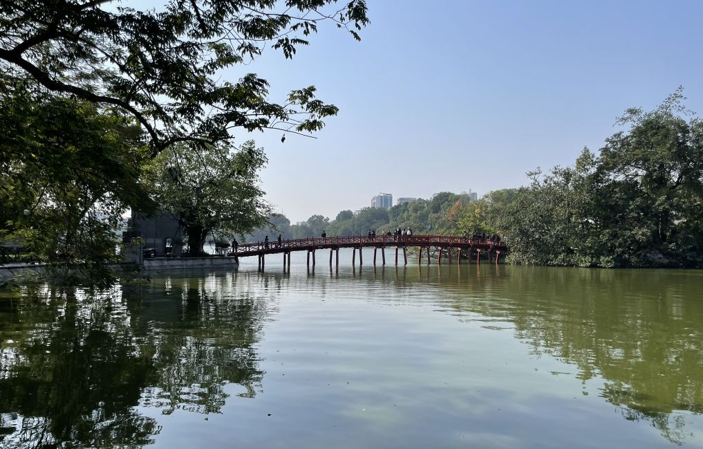 Thê Húc Bridge is a foot bridge over Hoàn Kiếm