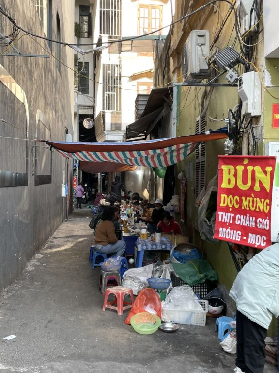 In Hanoi it is very common to see vendors setting up their tiny portable cooking gear on the street.