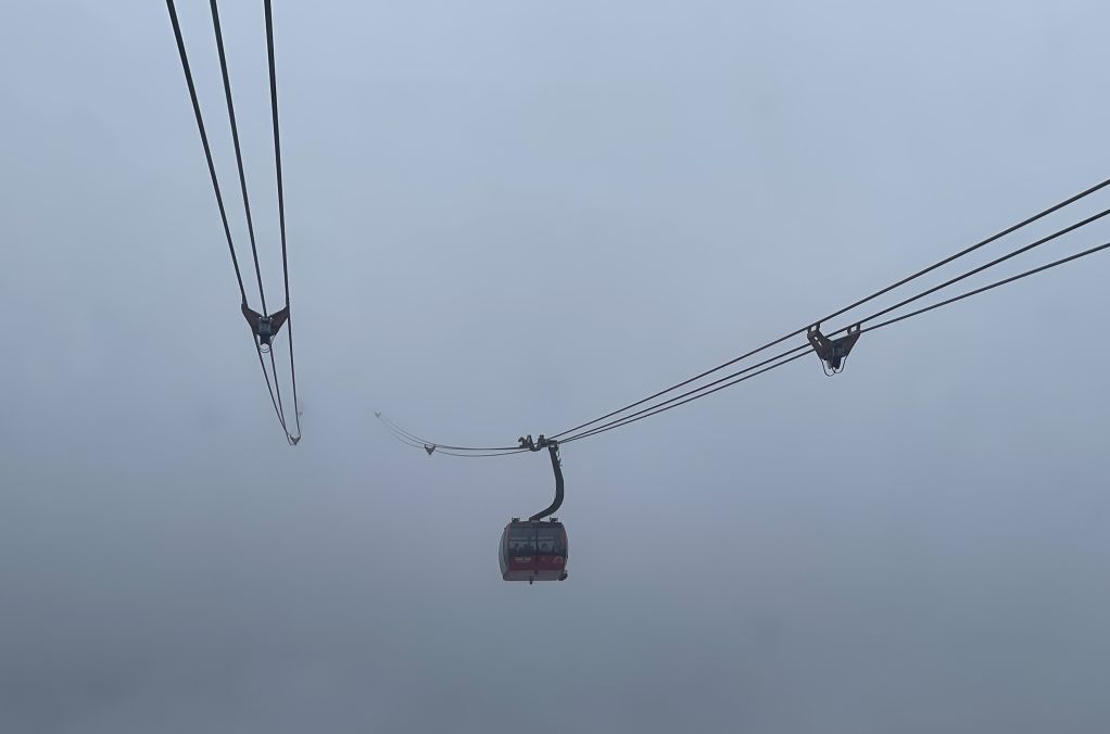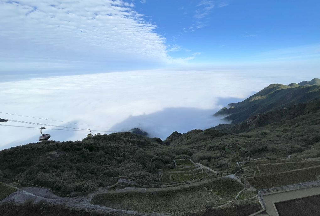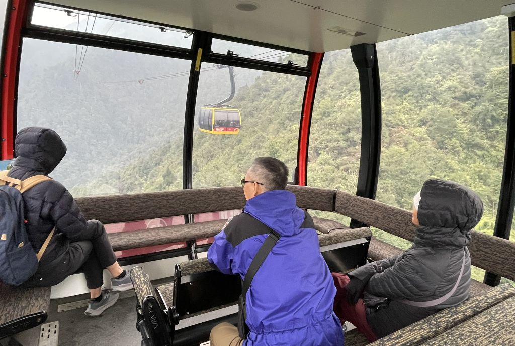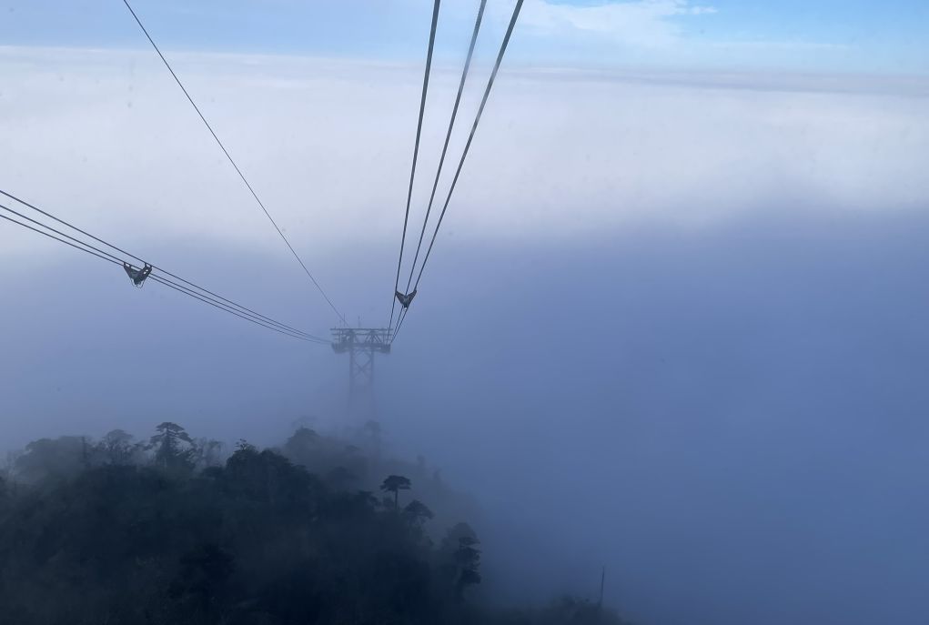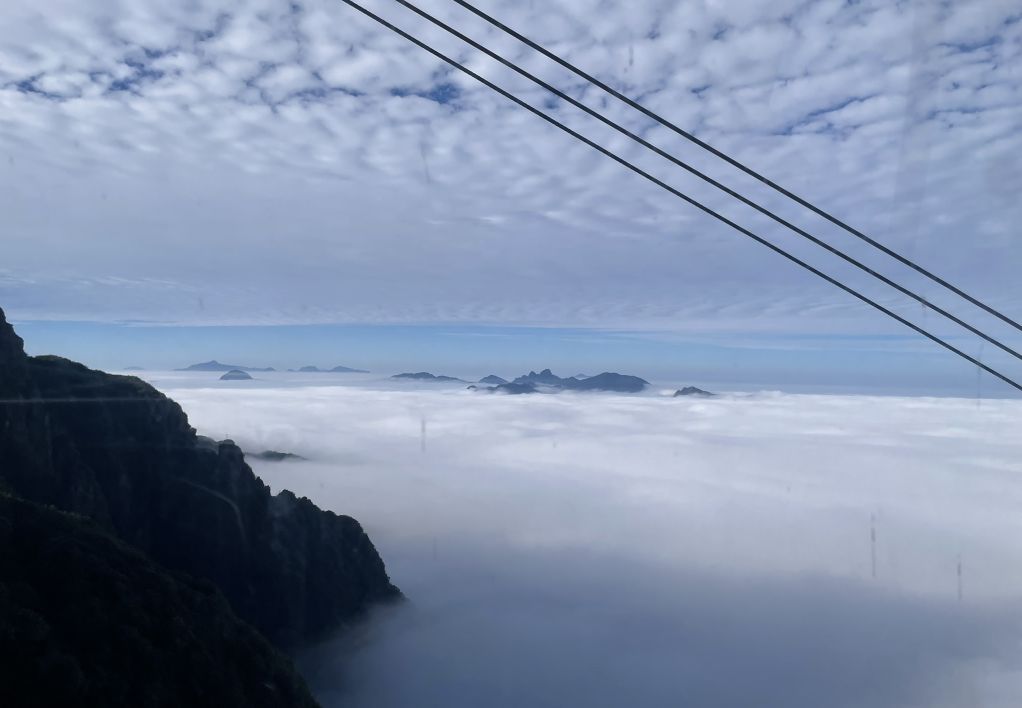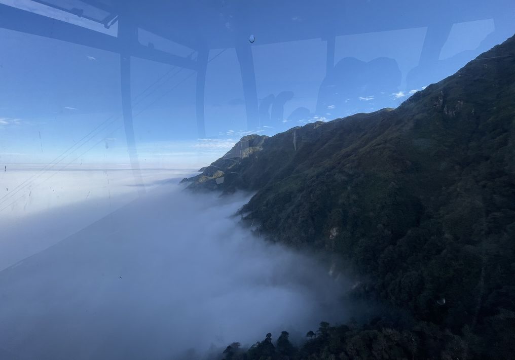 We are now getting out of the clouds. What an amazing view with the dense clouds underneath the cable car.