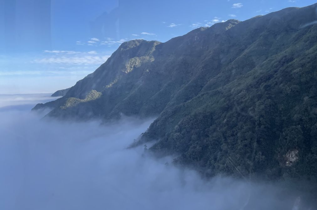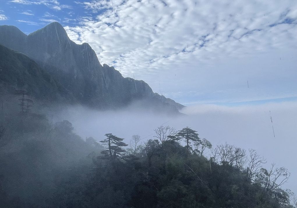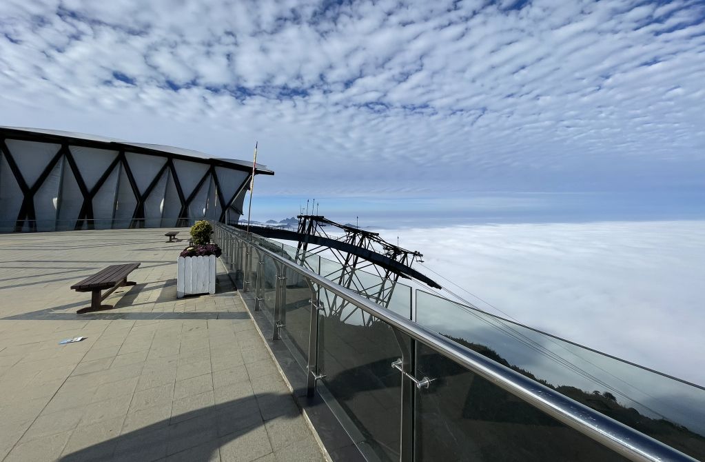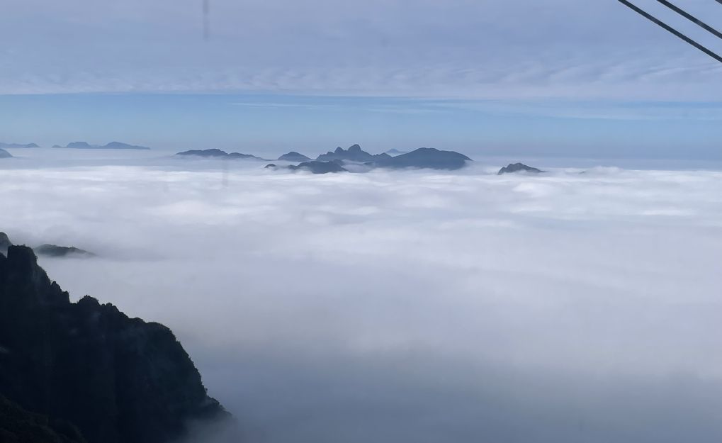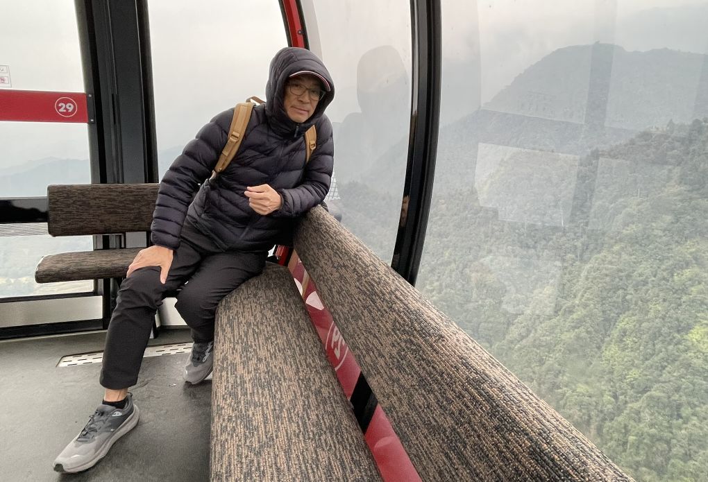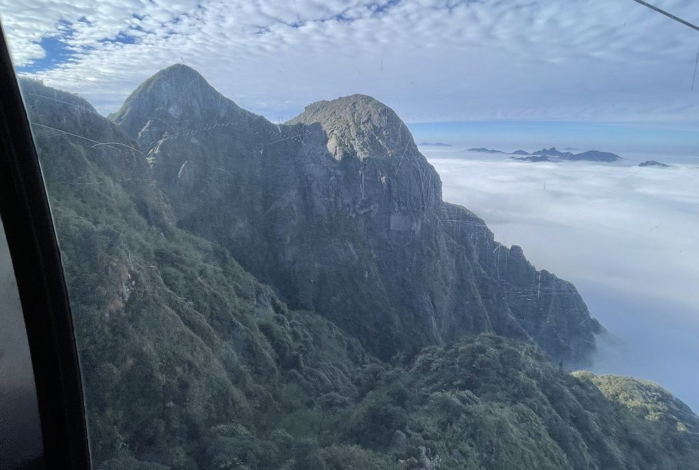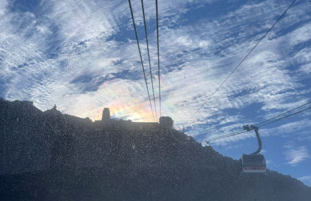We are now getting out of the clouds. What an amazing view with the dense clouds underneath the cable car.