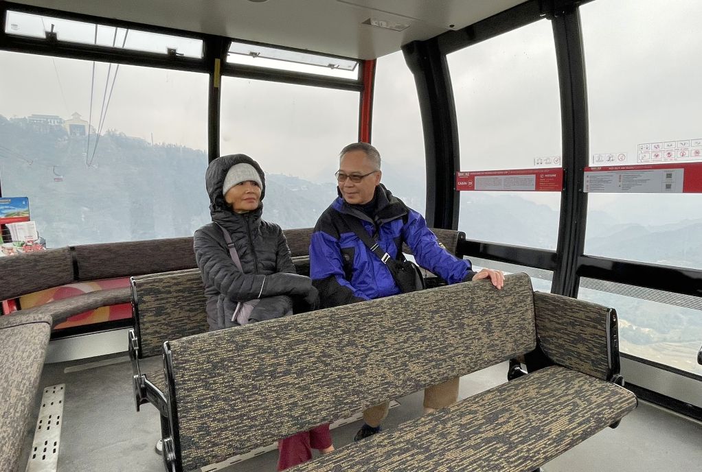 It is winter in Sapa and at it is very cool. We were the only people in the cable car.