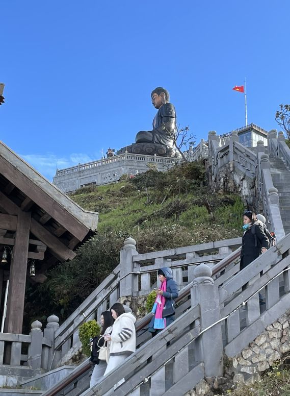 In order to build the statue, all materials were carried by local porters to the top of the mountain via a narrow steep trail. Vietnam is a predominantly Buddhist nation. and it is estimated that over 70 percent of the population are either Buddhist or follow Buddhist practices.