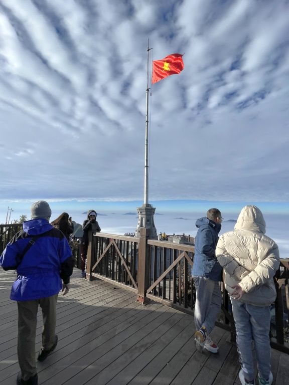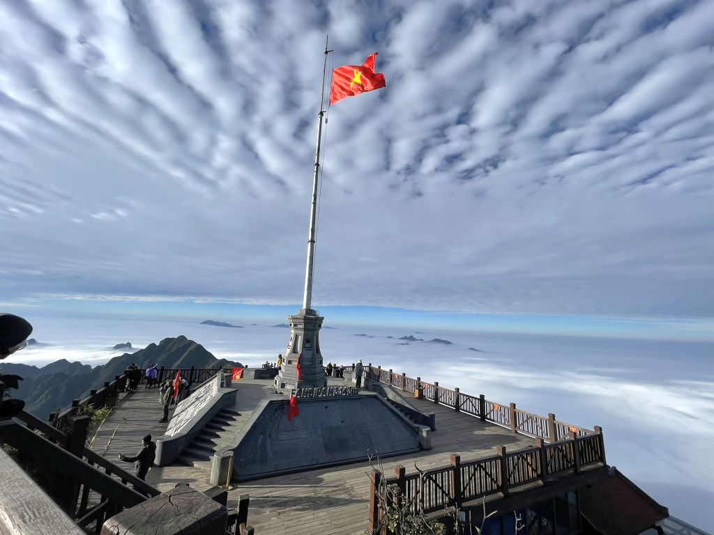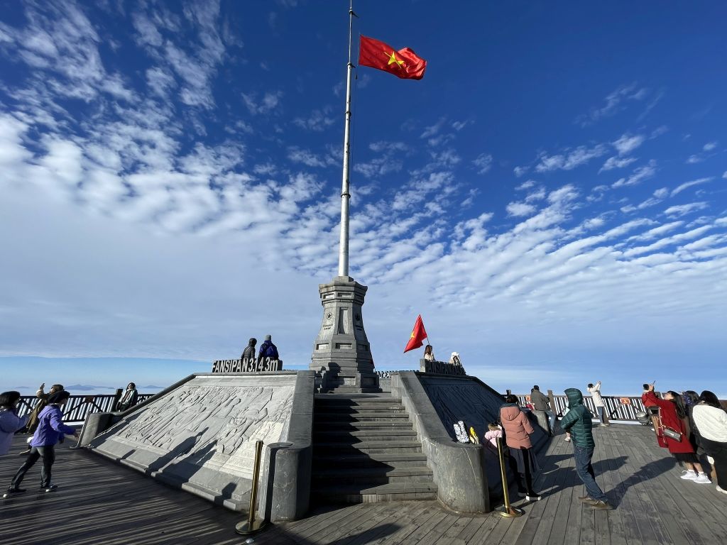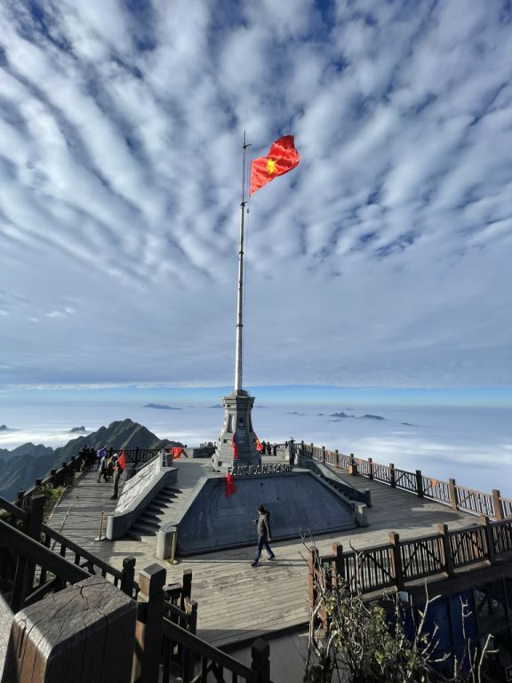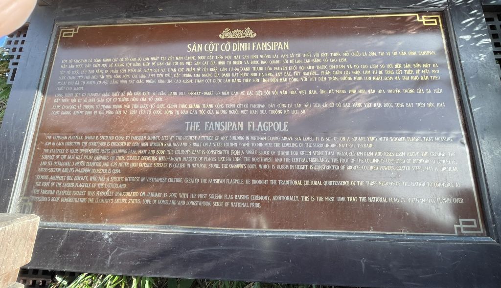 The Flagstaff on the Fansipan rises 82 ft. tall. It was constructed out of Thanh Hoa green marbles, four types of timber species and a exclusively special fabric for the flag.