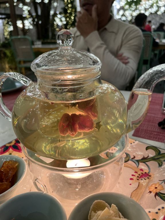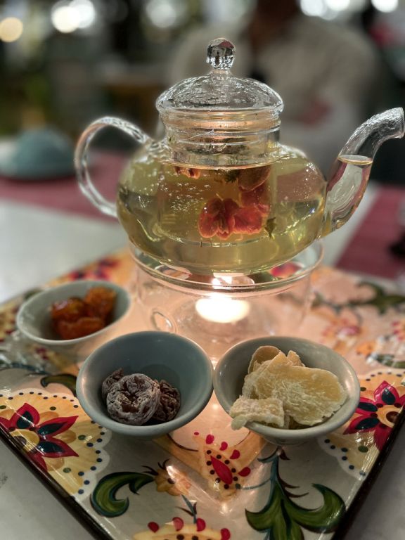 Tea is amazing, included are bunch of dried fruits such as ginger, plum, and Asian apricot.