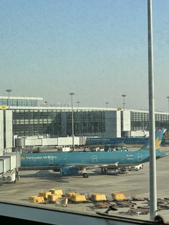 We are at the Shanghai airport and behind us is Vietnam Airlines.
