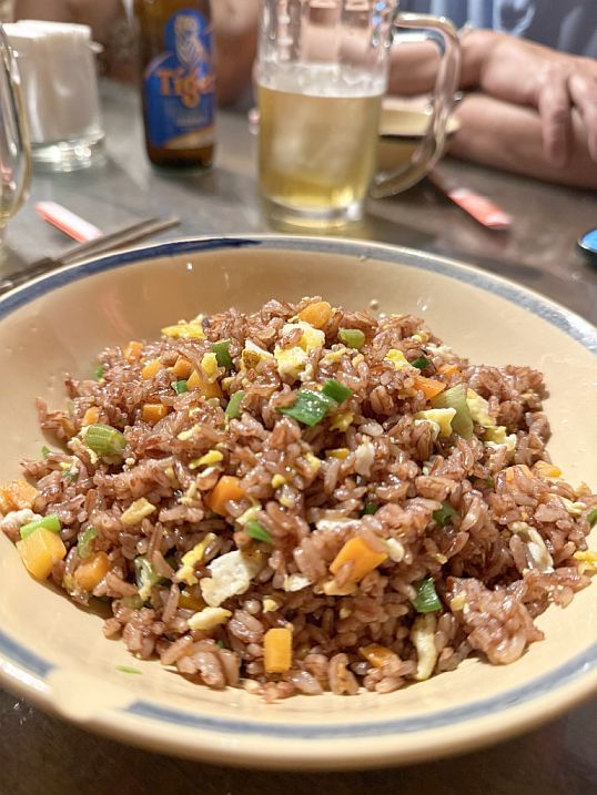 We started the meal with two different kinds of fried rice, one rich with crab, and the other a striking purple hue, both flavorful in their own way.