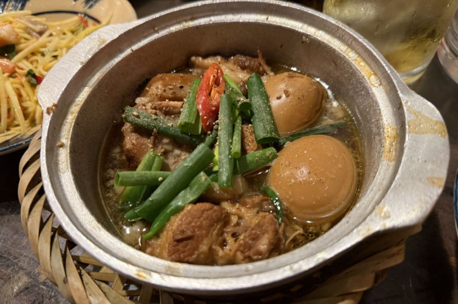 The meal grew heartier with a piping hot clay pot of braised pork belly with eggs in caramel sauce, deeply savory and comforting.