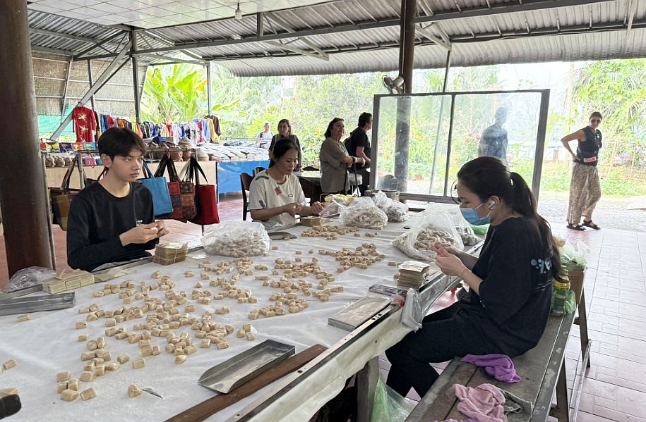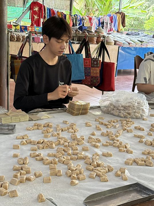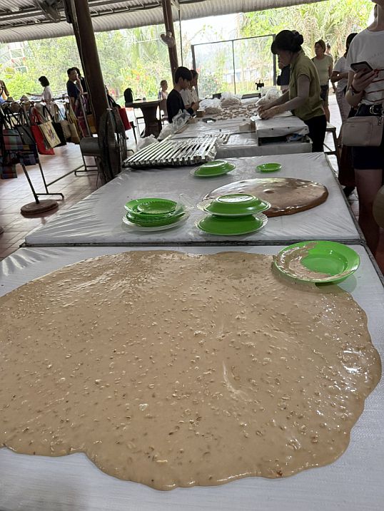 From there, coconuts are used to make the region’s famous keo dua (coconut candy), a sweet, chewy treat made from coconut milk, sugar, and sometimes malt or peanuts.