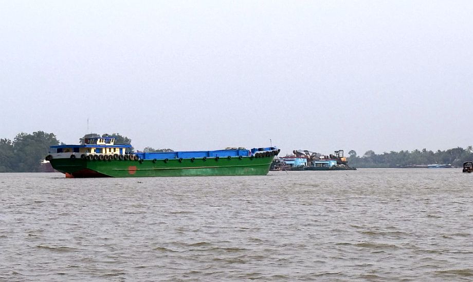 As you reach the tip of Unicorn Island, the number of boats increases noticeably. The larger red-painted boats docked near the shore are often used for transporting bigger groups of tourists or even goods along the river. Their bold color makes them stand out against the muddy water and green banks.