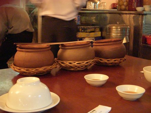 Just in case the com trai (crispy rice) is too hard for you to chew, the restaurant is also serving regular steamed rice in clay pot shown above. |
