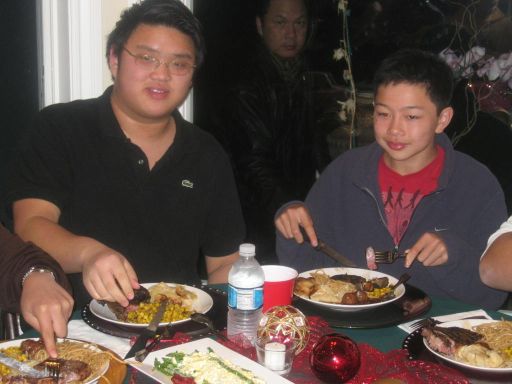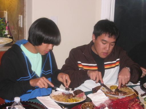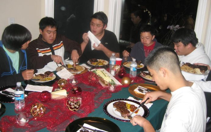 The kids were served first for dinner. All of them really enjoyed Phuc's steaks.
