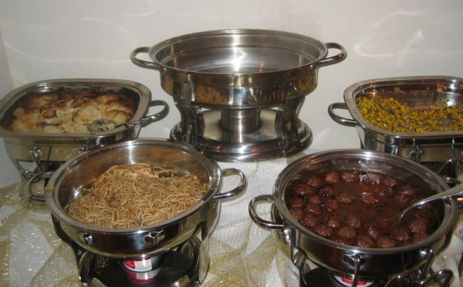 The side dishes: Spaghetti, meatballs, Potato gratin and roasted sweet corn
