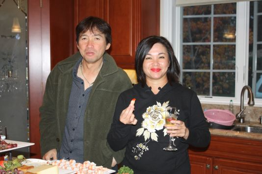While we are eating our appetizers, Phuc is getting ready to grill the steaks!