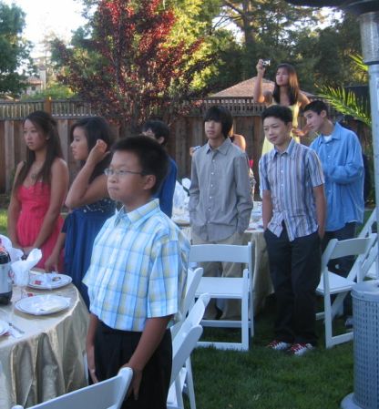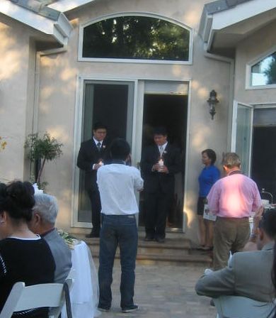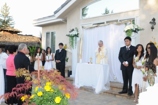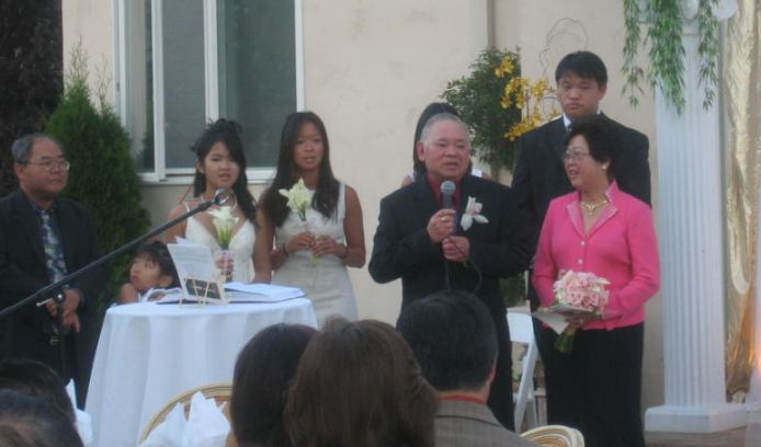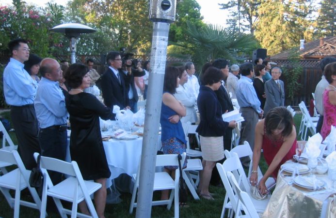 The guests standing up while the priest's sermon.