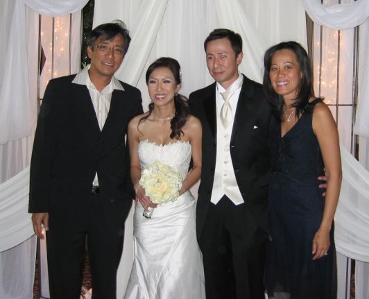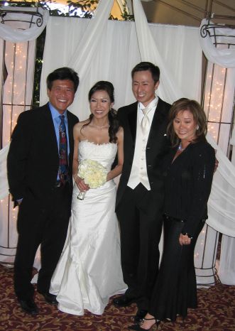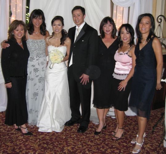 Doan, Thuy, Maily, Hanh and I posing with the bride and the groom.
