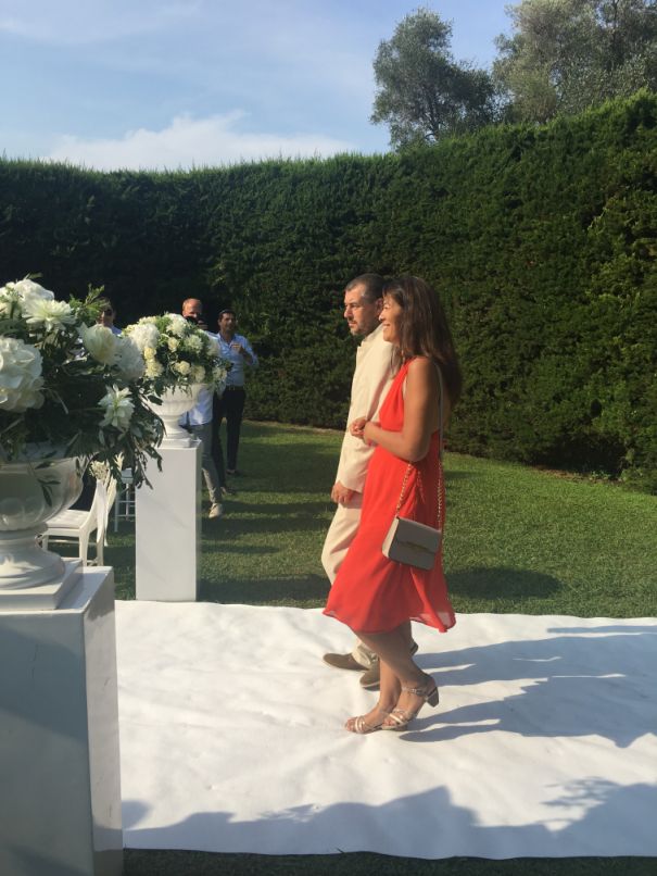 Now that the ceremony is over, all the guests are lining up to take a picture of the newly wed!