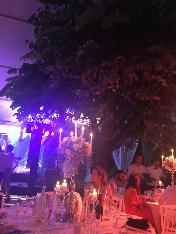 It is getting dark now and this is the dance floor and the band area in the back.