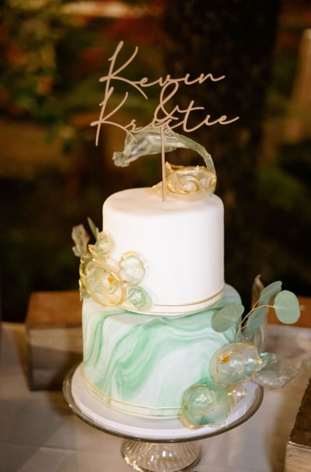 The color of cake (green) is also perfect as the weeding is outdoor surrounded by lust green Redwood.