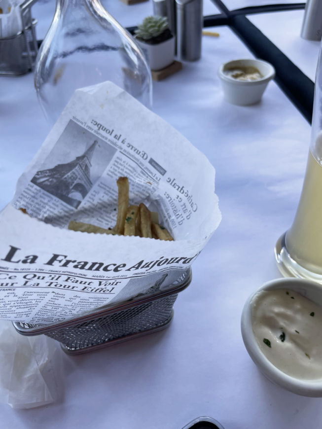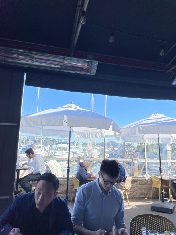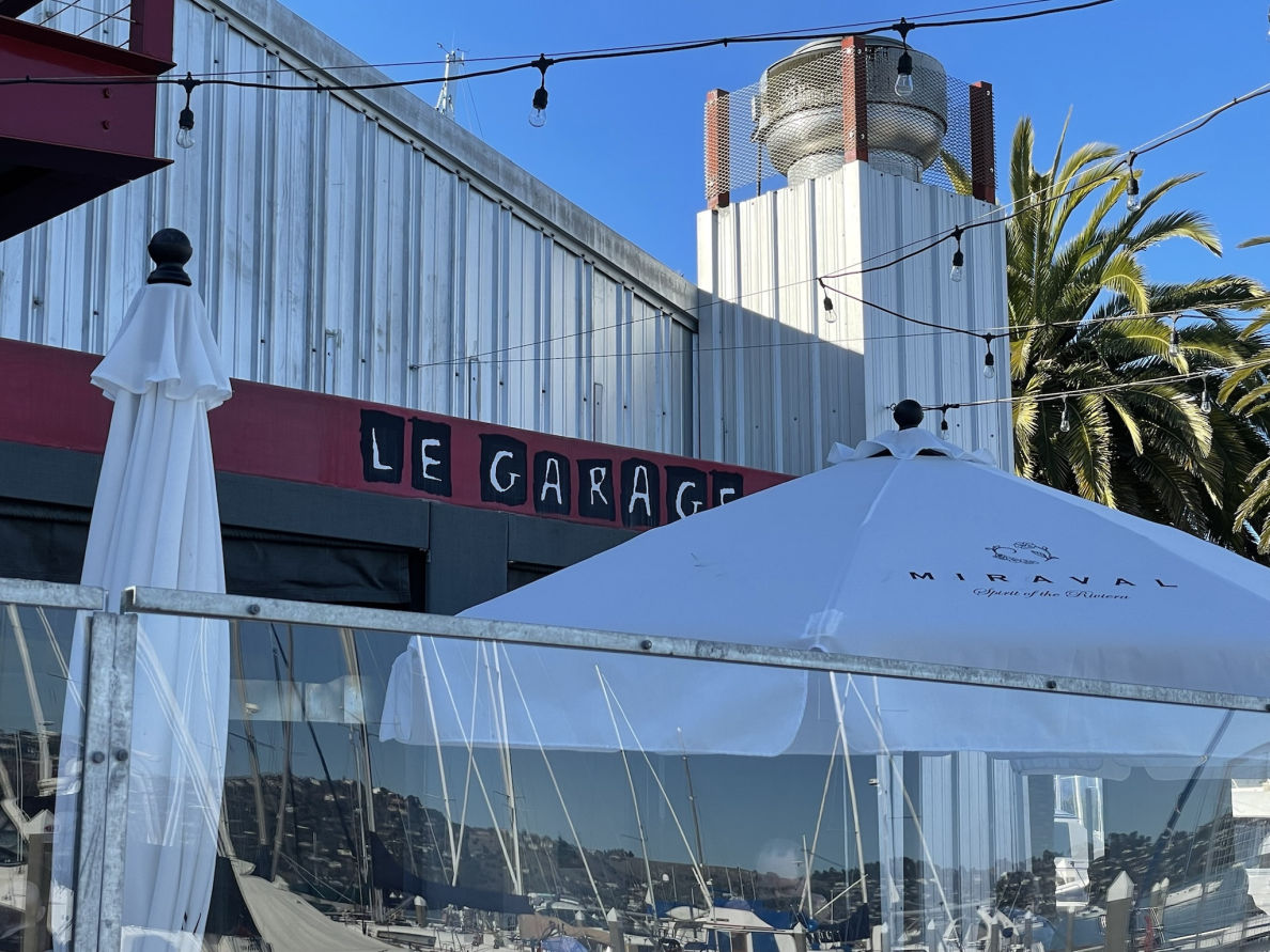 The Garage is a French bistro overlooking Sausalito's Shoomaker Point Marina.
