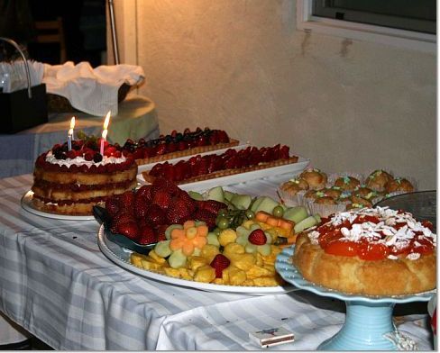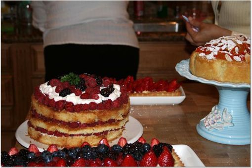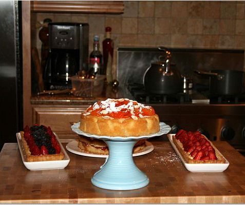 I made a Berry Cake, a Candied Kumquats cake and two fruits tarts. |