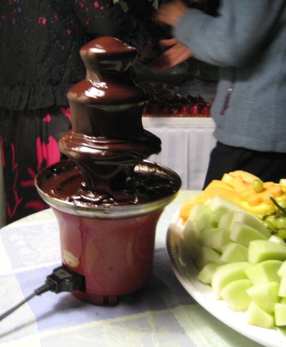 I also set up a chocolate fountain for the kids. This is another hit with the kids! They were mesmerized with the fountain and simply loved to dip the fruits into the chocolate. |