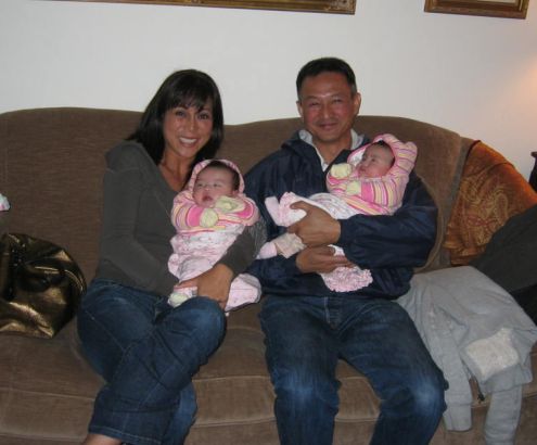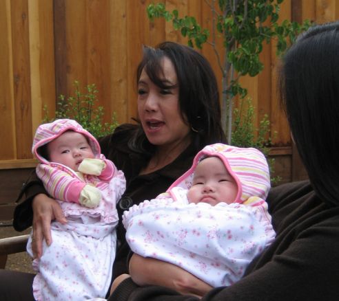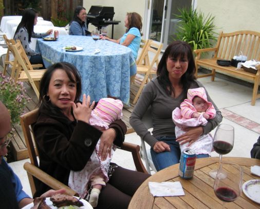 Hanh and Thuy holding the girls so that Jennifer and Tri can enjoy themselves. |