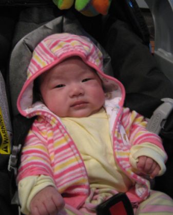 This is Nathalie. Both were born on March 1st so both girls are almost 3 months old. They are just adorable. |