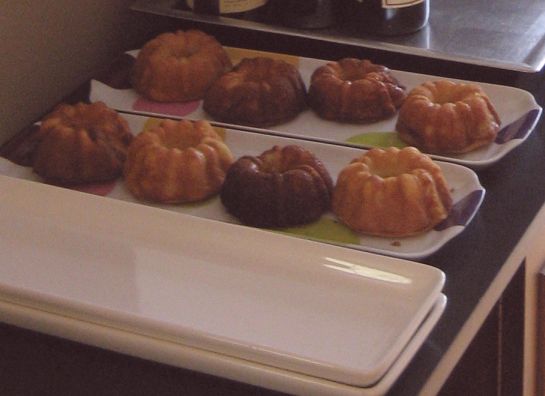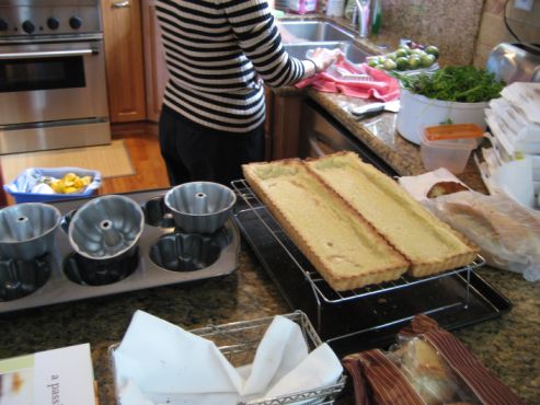 I just finished baking the Casava Cakes (Banh Khoai Mi) and Auntie Kim is washing the molds. On the right side the shells for the Tarts just came out of the oven and are resting on a rack cooler. I will fill up the shells with a crème Pâtissière and will decorated them with Strawberries, and mixed Berries. |