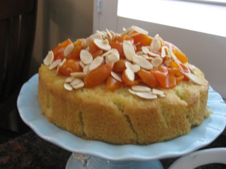 The génoise cake is done absorbing the rum syrup and is decorated with candied Kumquats. Powdered sugar will be added at the last minute. |