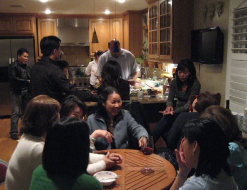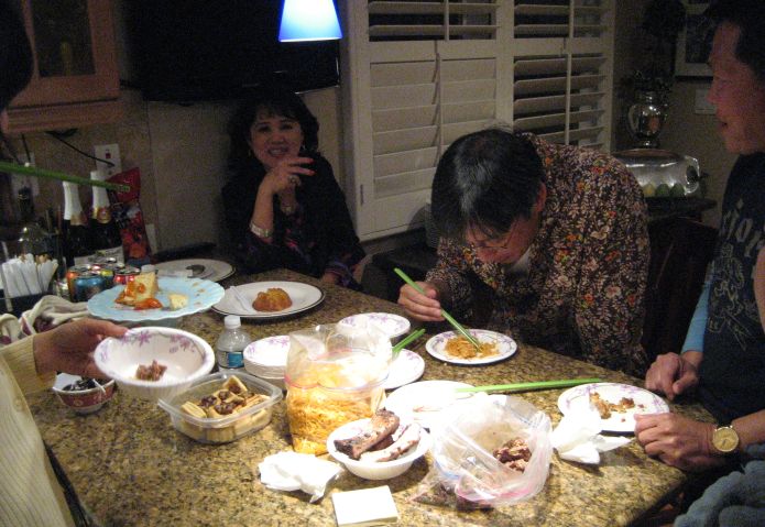 This picture was taken around 1:30Am when all the guests left! Vinh and Hoa were hungry and decided to bring out the leftovers and have a little snack. At this late hour for some reason the food just taste better. |