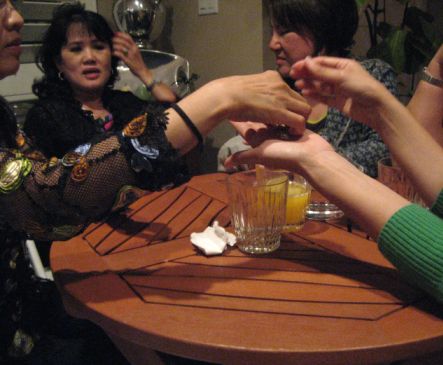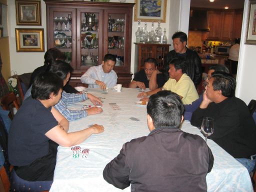 While the ladies were checking out Lan Huong's jewelry the guys were in their own world: Texas Hod'm.