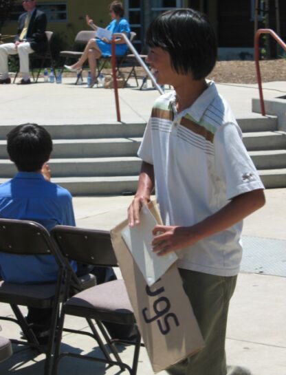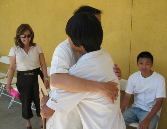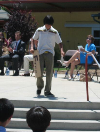 After the big hug with the superindentent, everybody applauded and Kevin went dow and showed his sign to the crowd! Too bad Hoa could not take a picture when he was hugging the superintendent ( it happened way too fast for Hoa to snap a picture).