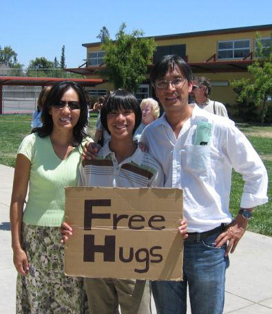 Is he "Almost famous" with his "Free Hugs" sign?