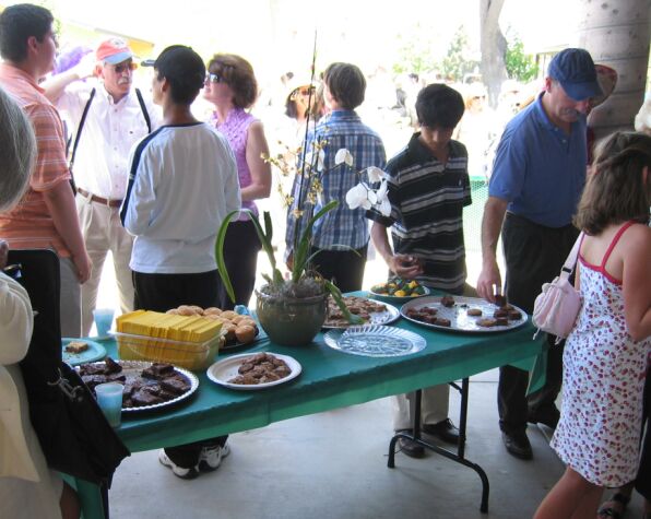 After the graduation ceremony, all the students/parents/family are gathered in the front of the school and are treated with some treats especially prepared by the PTA. Co Doan volunteered to bring her beautiful orchid arrangement for the happy occasion. |