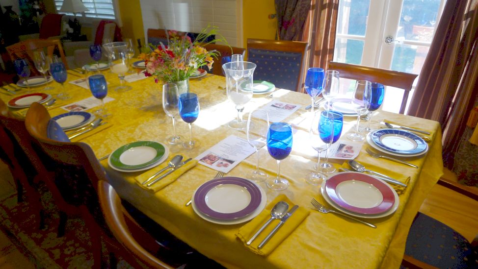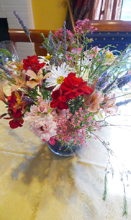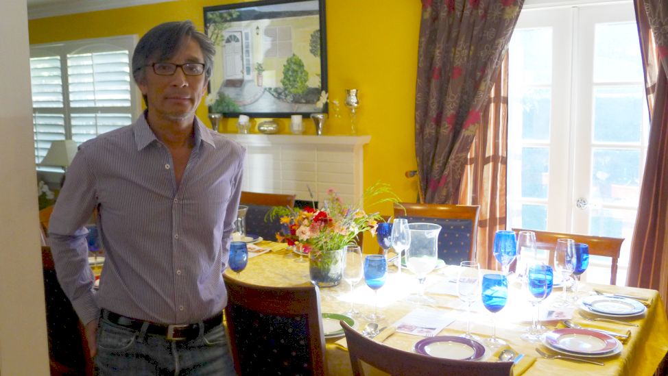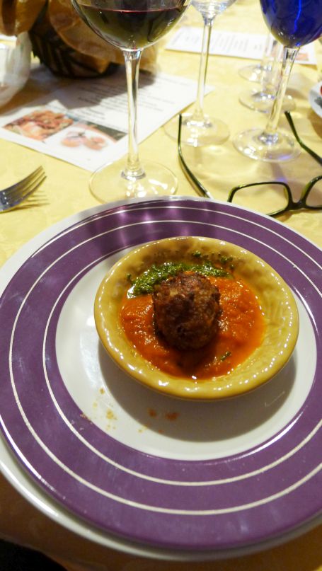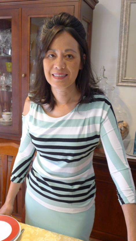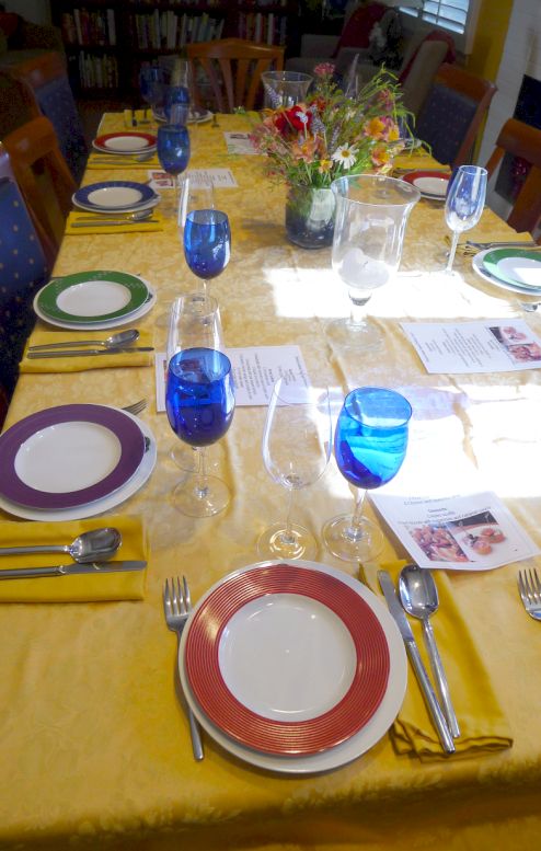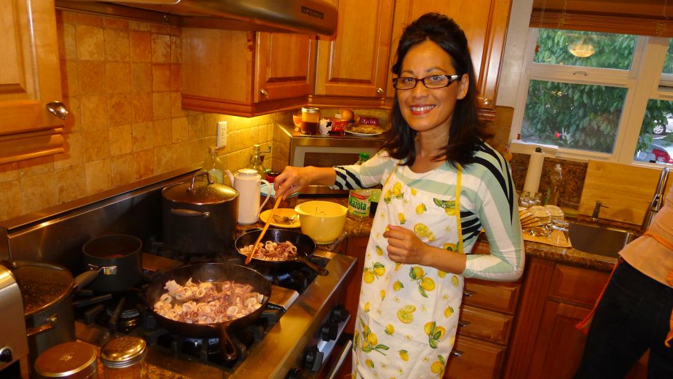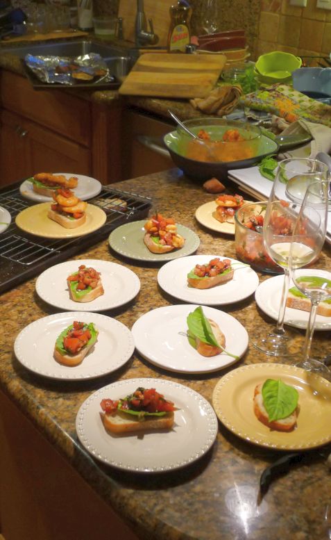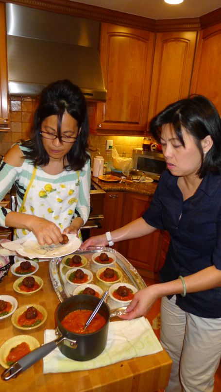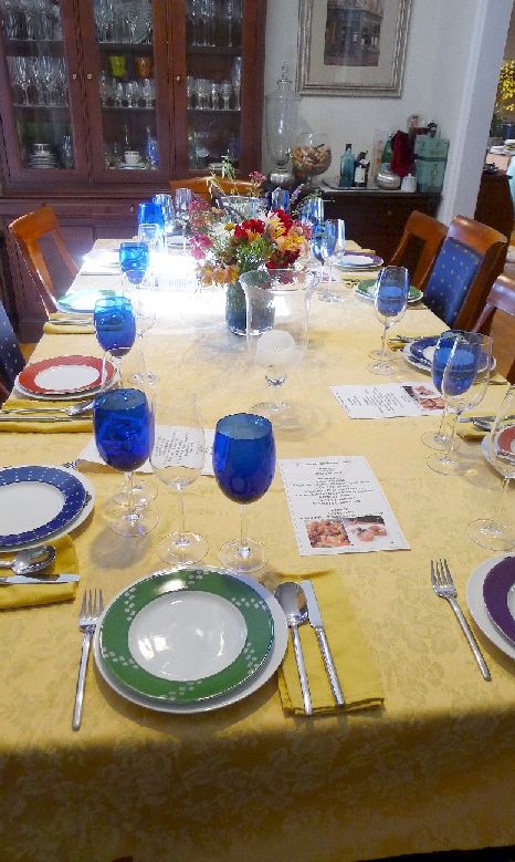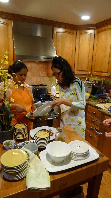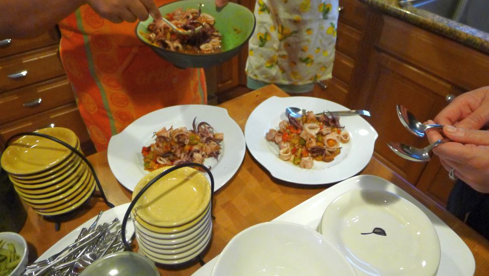 Preparing the 3rd course with the help of Miriam our helper. Without her I would not be able to throw large dinner party! |