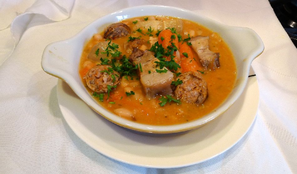 It is called a poor man cassoulet because it does not have duck confit however it is a really good dish. I usually don' t care for beans but here it is actually quite delicious with pork belly and Italian sausage.