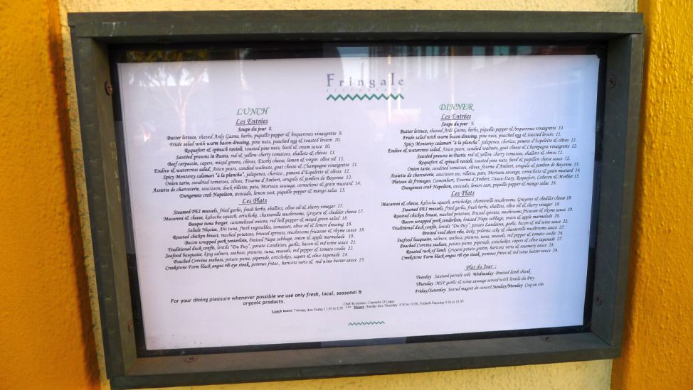 The menu on the left and on the right they also offer a fixed menu for $38 including soup or salad, a main course pre-selected depending on the day, and dessert.
