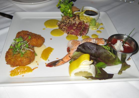 For appetizers we ordered a few Forbes Mill platter with jumbo prawns, Crab cakes, and seared Furitake Ahi tuna. The appetizers was actually pretty good and we all enjoy it. |