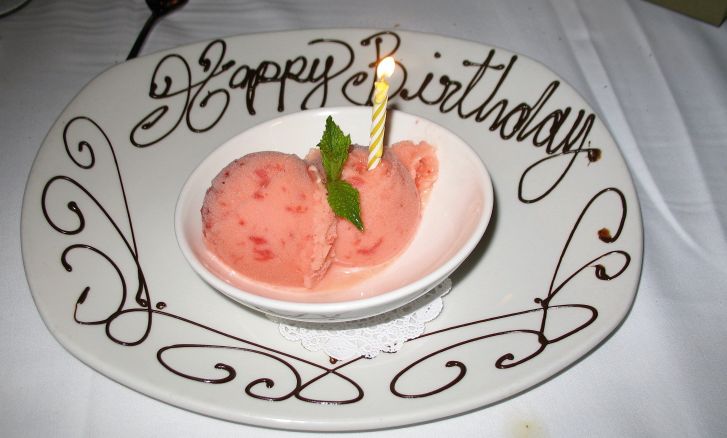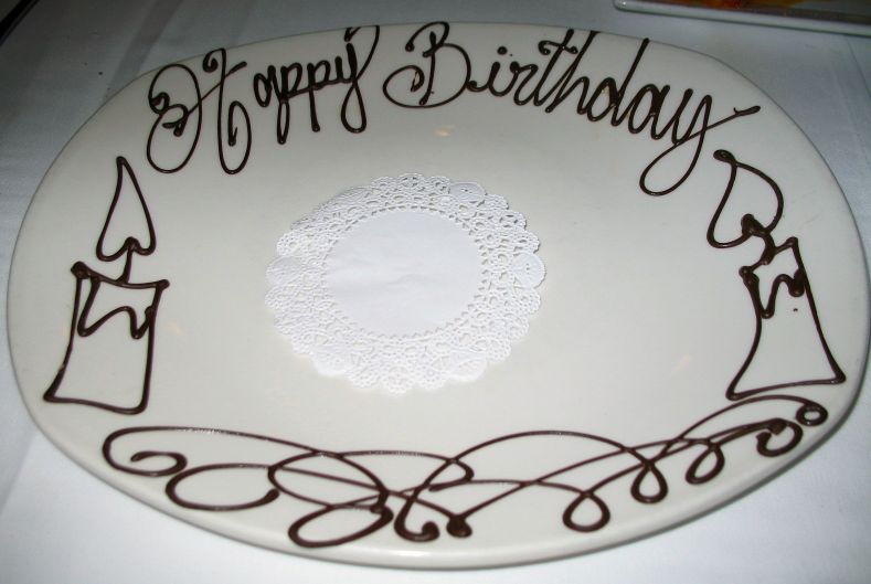 This is pretty original! They took a huge platter and wrote happy birthday and drew a few candles and decorative motives with melted chocolate.